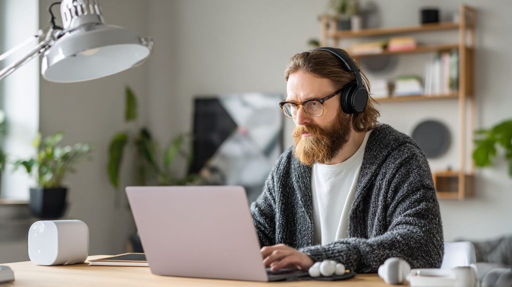 For WFH productivity, tools like ANC headphones block neighbor noise, child sounds, or typing clatter. Pair them with a home office setup featuring acoustic panels for better results. Experts recommend testing transparency mode to stay aware during conference calls without full isolation.